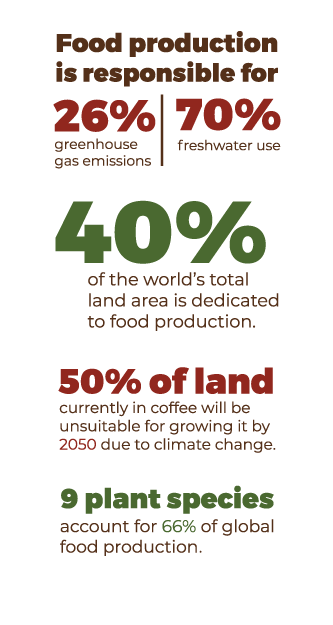 Food and the way it’s produced has a dramatic impact on the environment, biodiversity, and food security.